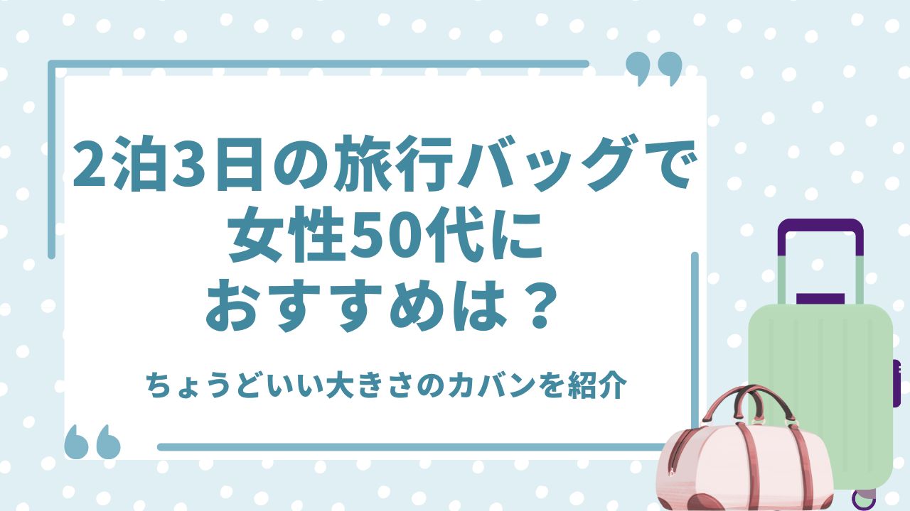 2泊3日の旅行バッグで女性50代におすすめのカバンをご紹介します。